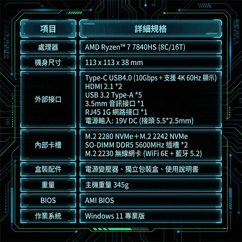 | 價格 | 較 7840HS 稍高 | 💰 親民 CP值高 | 整機價格最高 | 7840HS 更省荷包 |