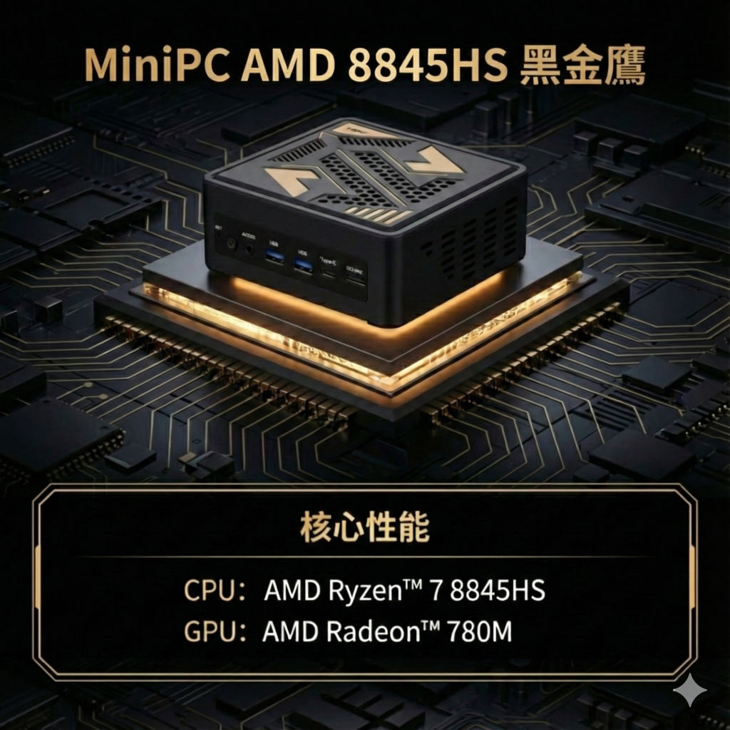✅ AMD 8845HS 迷你主機 XYZX 黑金鷹款
